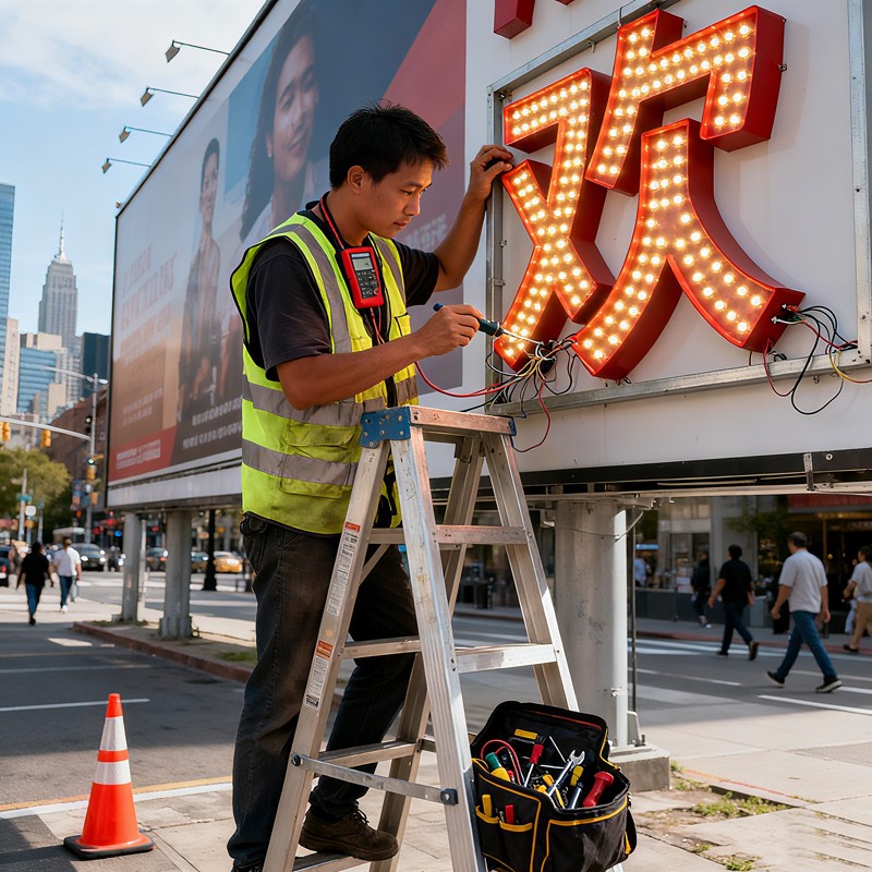 再查线路:检查电源到发光字的接头是否牢固,线路是否有破损、正负极是否接反;