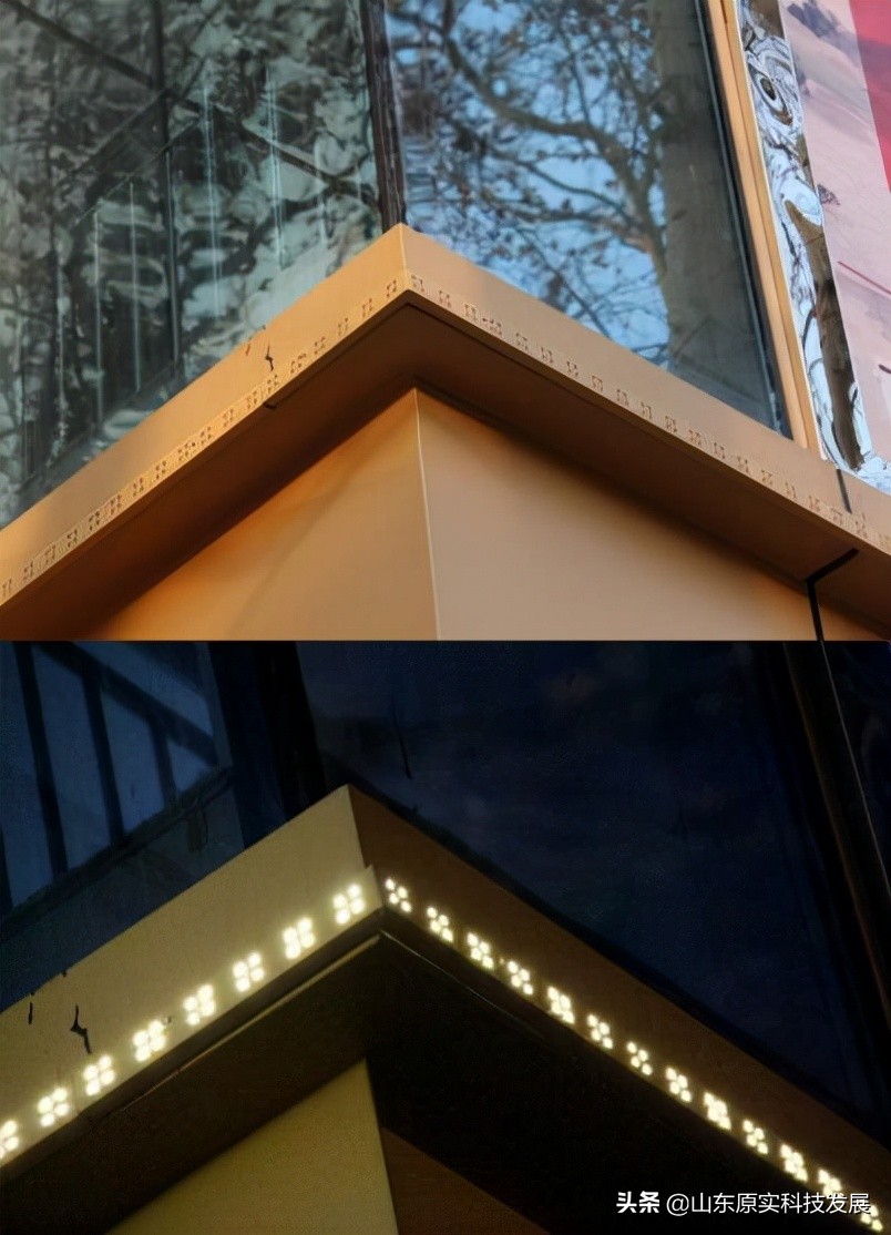 以下实景图片为每米16颗铝板冲孔灯安装实景(济南市新世界商城亮化工程安装实景)