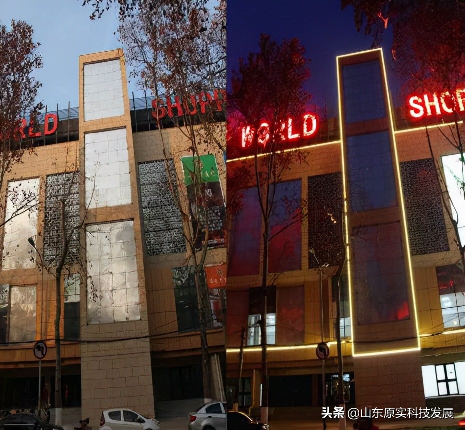 茌平京都国际购物广场铝板冲孔发光字及楼体亮化工程