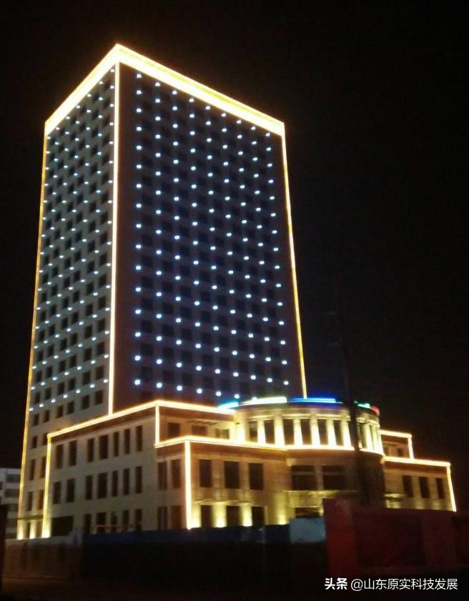 夏津温泉渡假村楼体铝板冲孔灯亮化工程