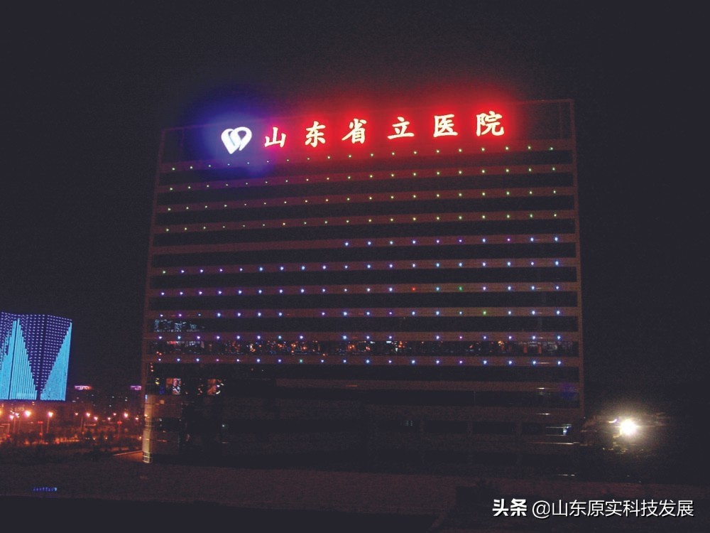 山东省立医院楼顶冲孔发光大字效果